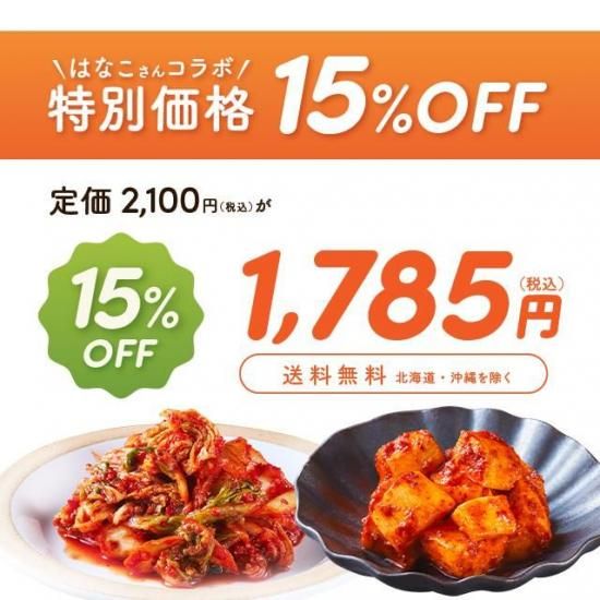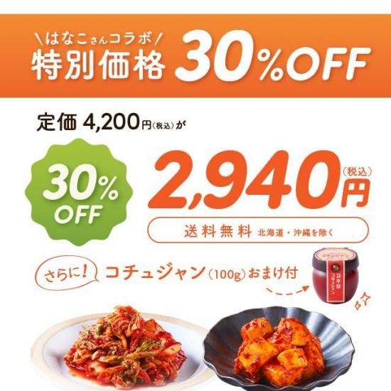 【はなこさんコラボ特別価格】 添加物不使用 キムチ2点セット×2セット+コチュジャンおまけ付 【送料無料】