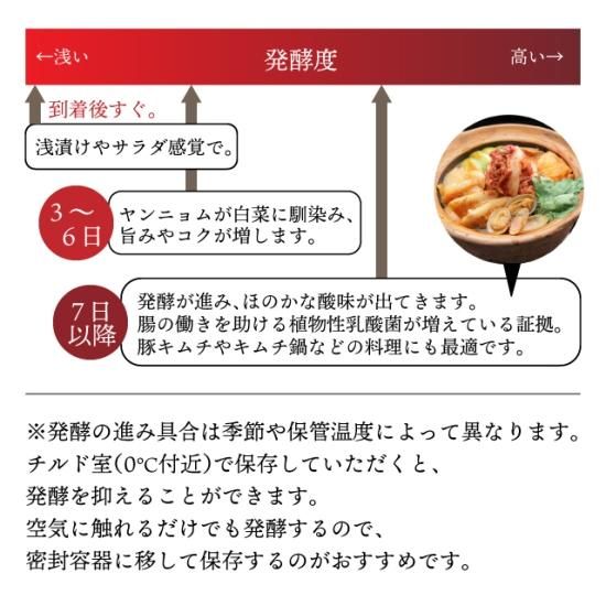 出来立ては浅漬け感覚で、日が経つごとに熟成した味わいをお楽しみいただけます。