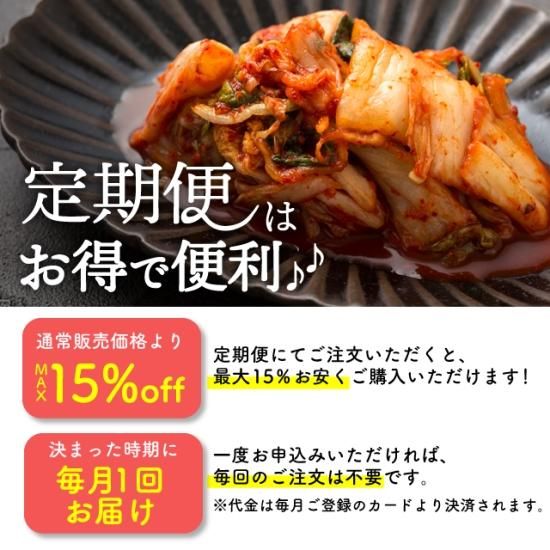 定期便6か月コース「白菜キムチ1kg×3(大辛タイプ・株漬け)」